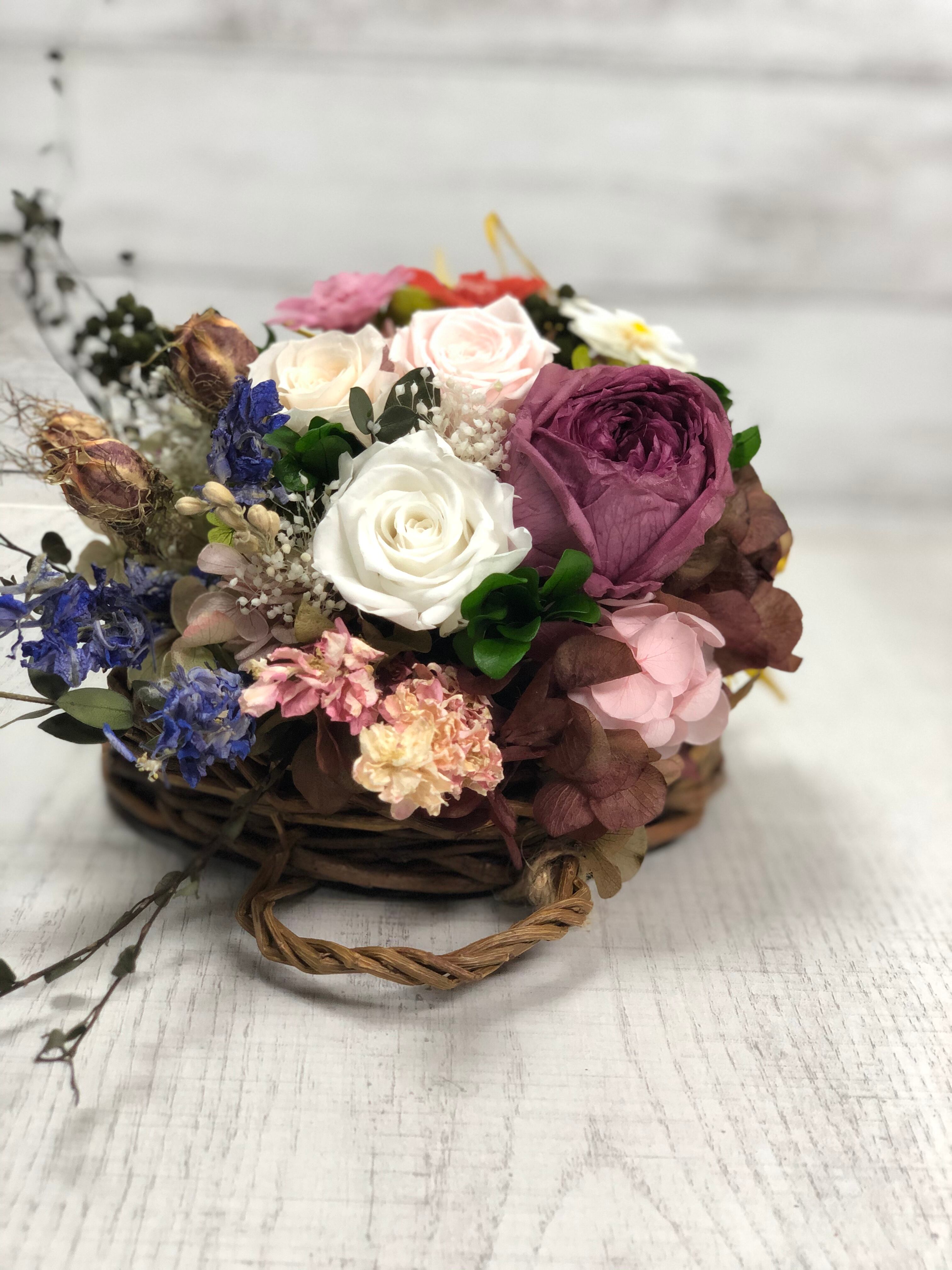 プリザーブドフラワー バスケットアレンジです。