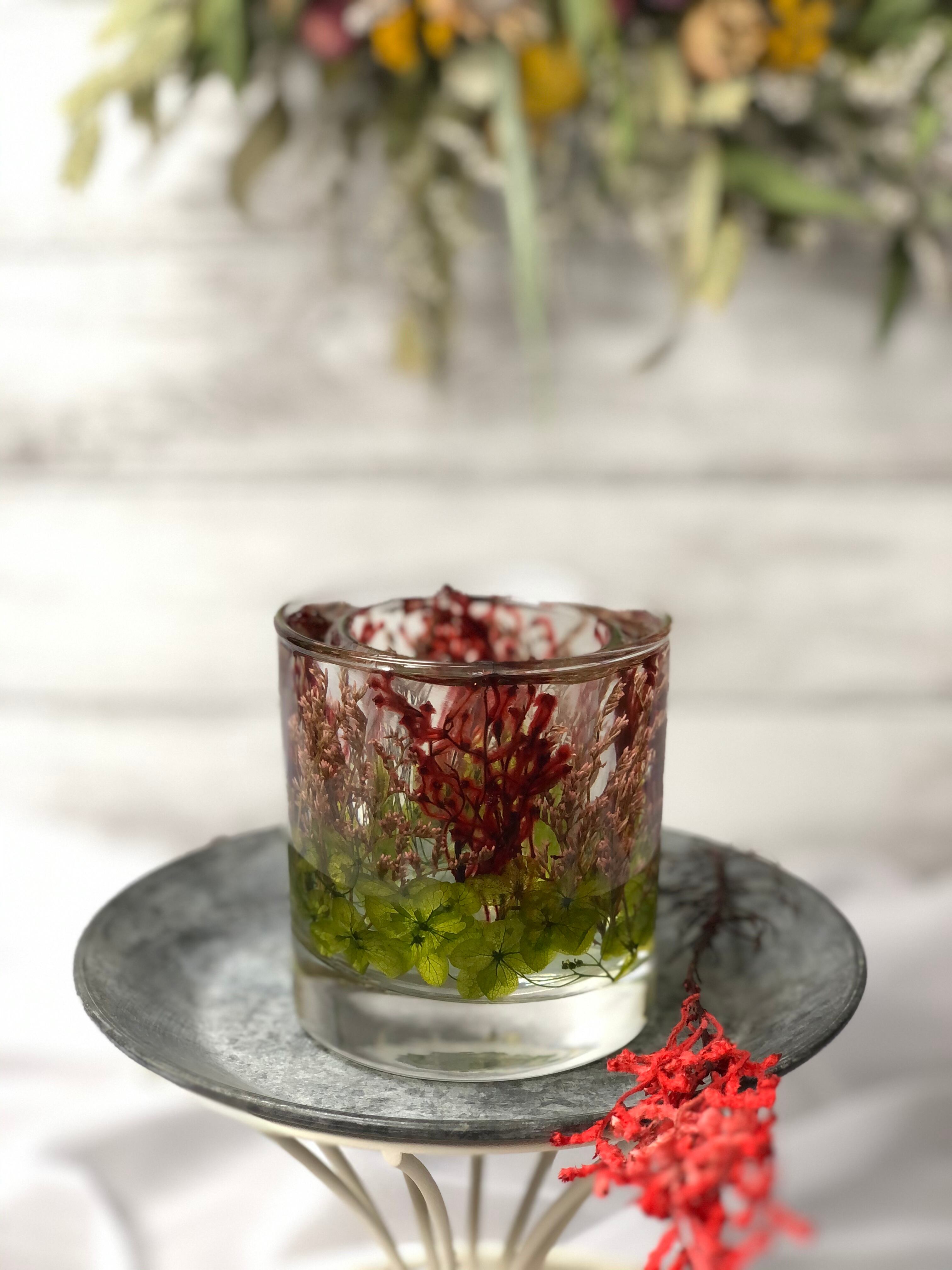 LEDライトとティーライトキャンドルを一つずつおつけしております。