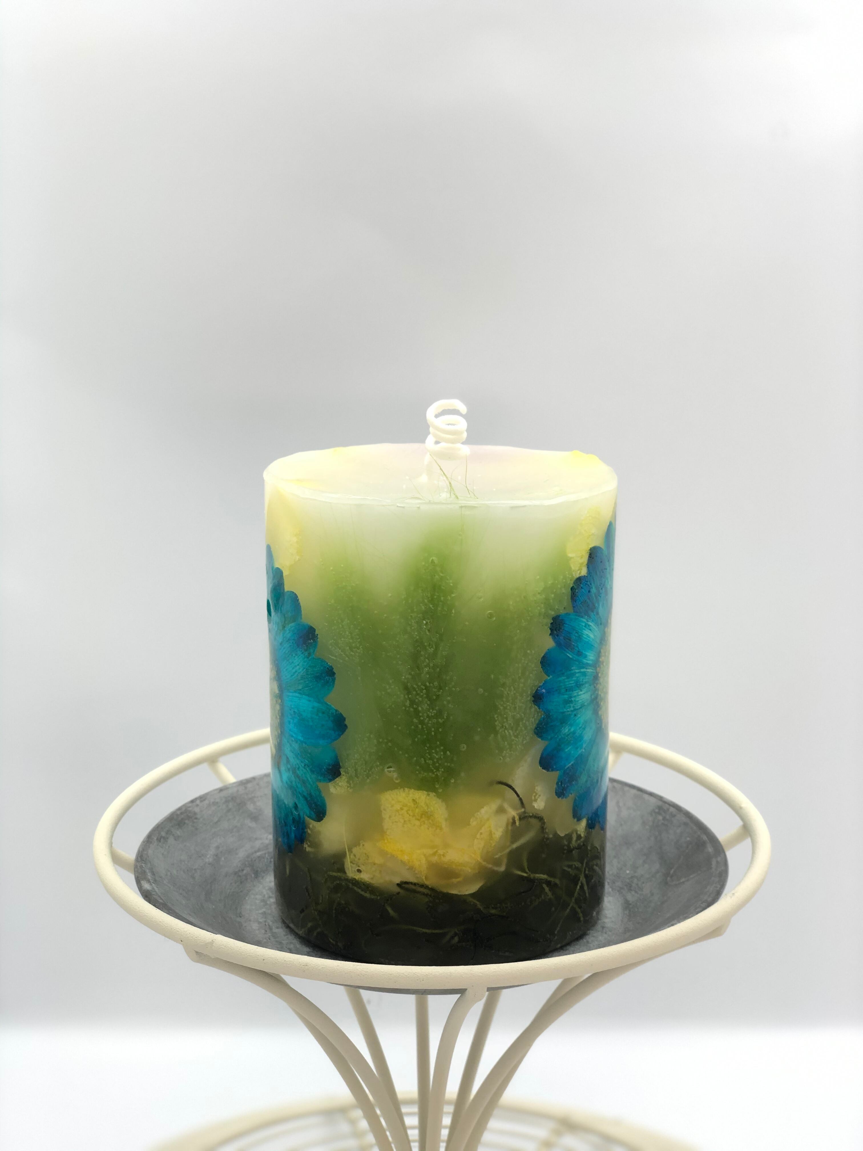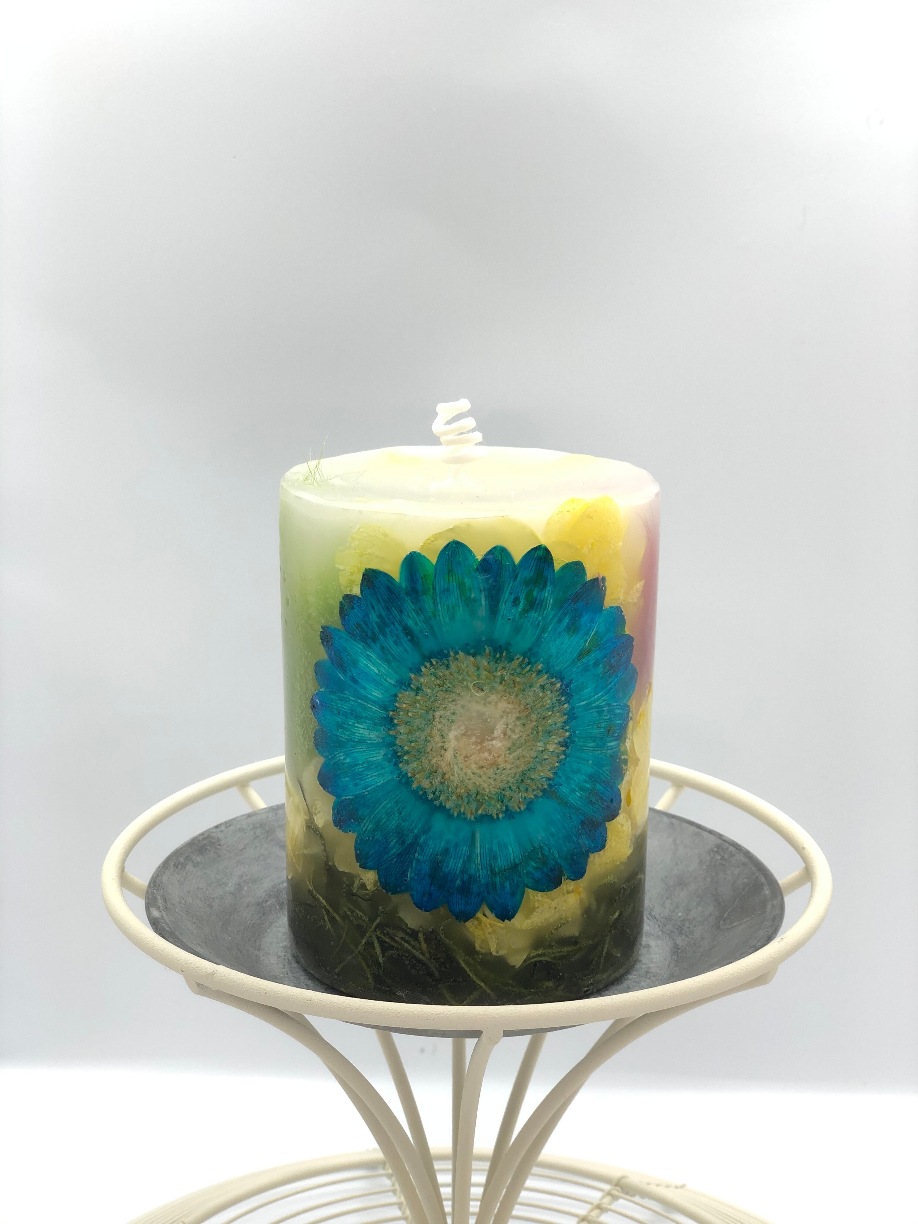 繊細な押し花のガーベラを使った、とても綺麗なボタニカルキャンドルです。