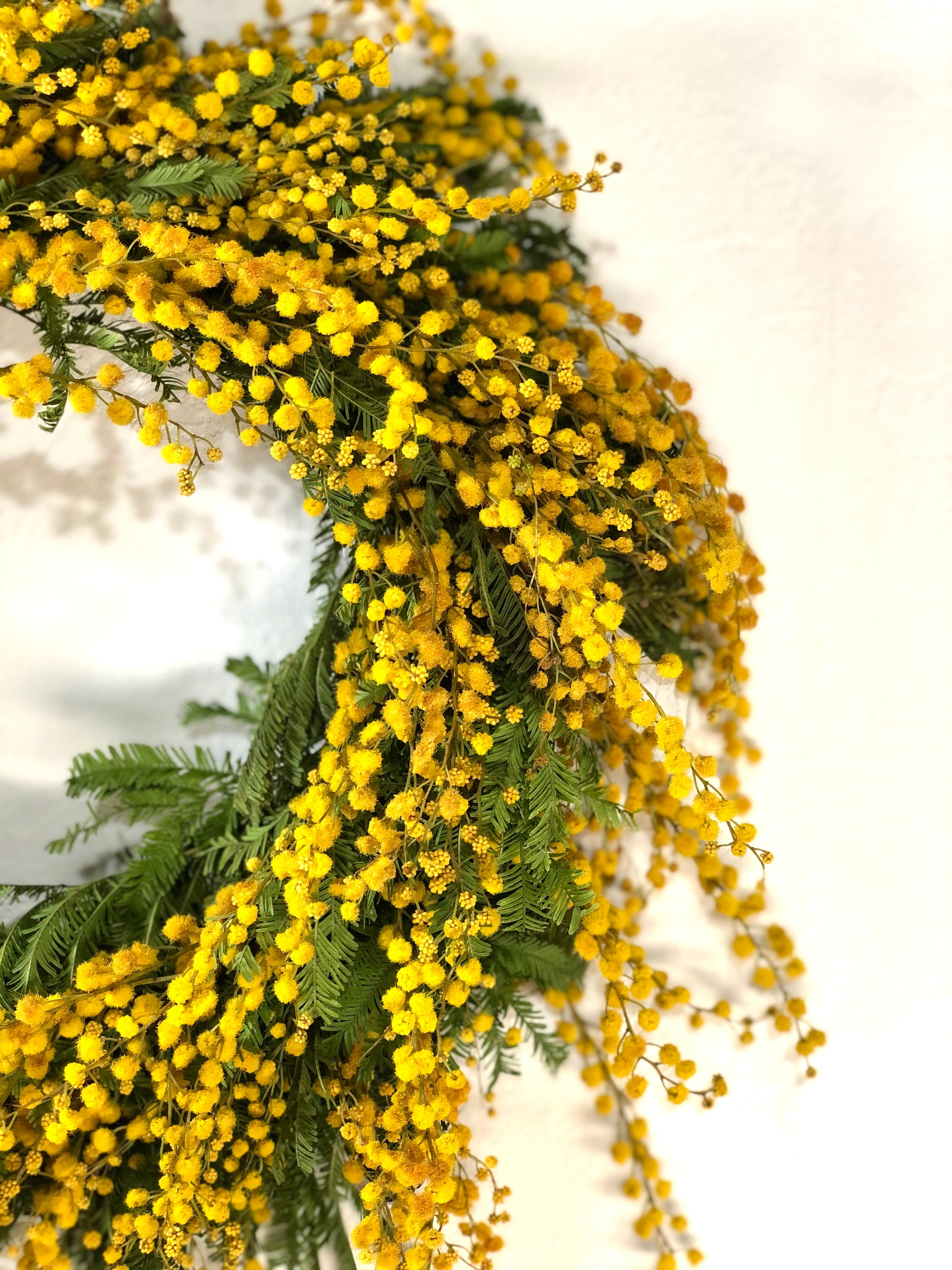 この時期だけの、フレッシュミモザのリースです。