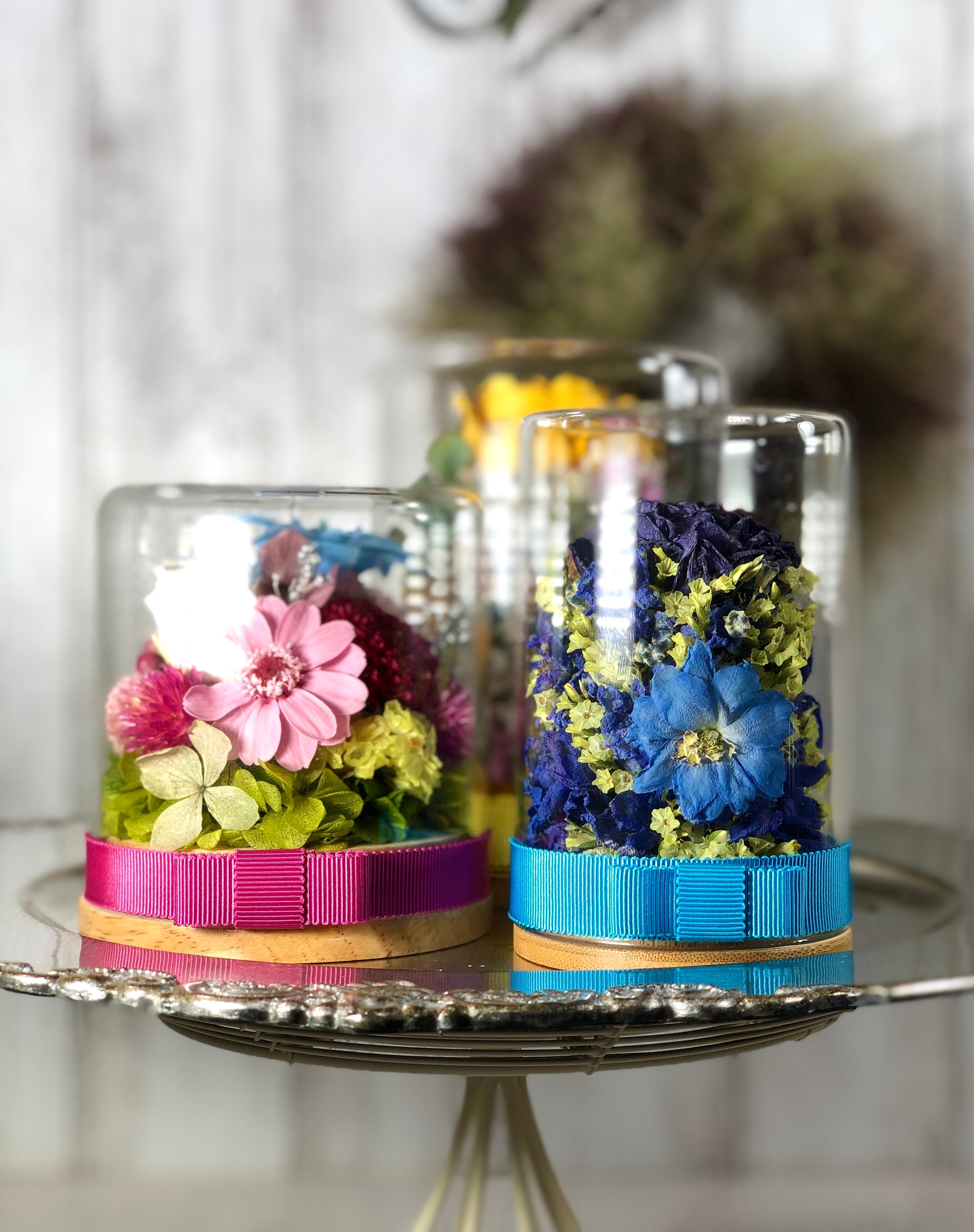 ガラス容器の中に、ドライフラワーをパフェの様に